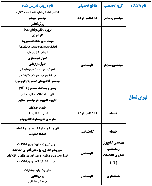 رشته مهندسی صنایع، گرایش برنامه ریزی و تحلیل سیستمها، دانشگاه آزاد اسلامی واحدتهران شمال، ورودی مهر 1385